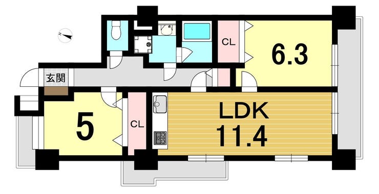 - 2面バルコニー