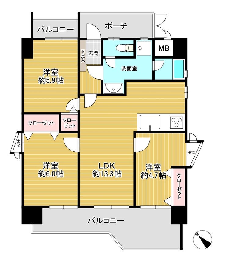 | 主要採光 | バルコニー | 南西向13.53㎡ | |