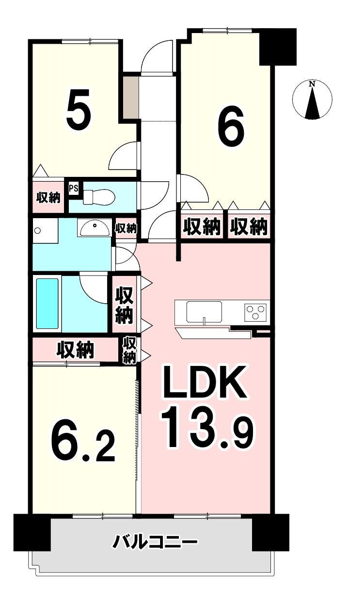 | 専有面積 | 壁芯 67.80㎡ | 所在階 | 15階建/9階部分 |
