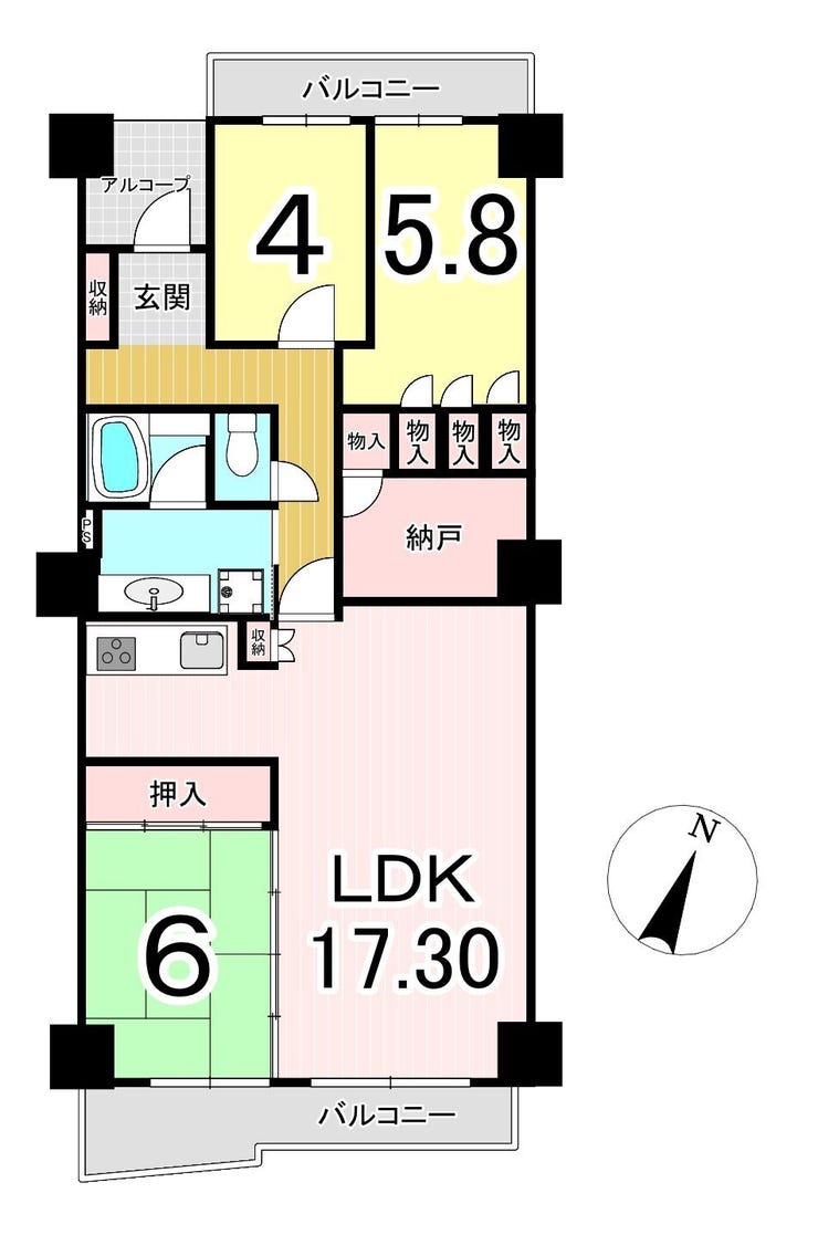 - 2面バルコニー