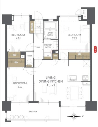 | 専有面積 | 71.61㎡ | 所在階 | 15階建/3階部分 |