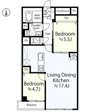 | 専有面積 | 壁芯 59.74㎡ | 所在階 | 5階建/2階部分 |