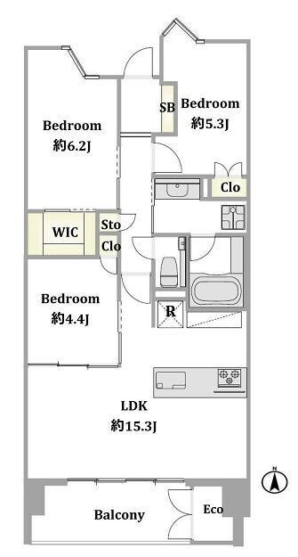 | 主要採光 | 南向 | バルコニー | 南向9.20㎡ |