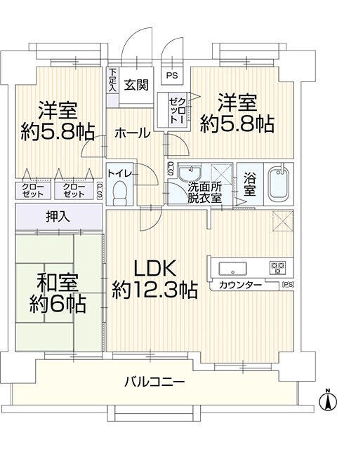 | 主要採光 | 南向 | バルコニー | 南向12.79㎡ |