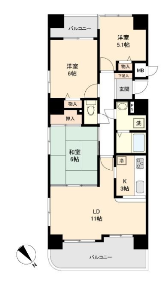 - 2面バルコニー