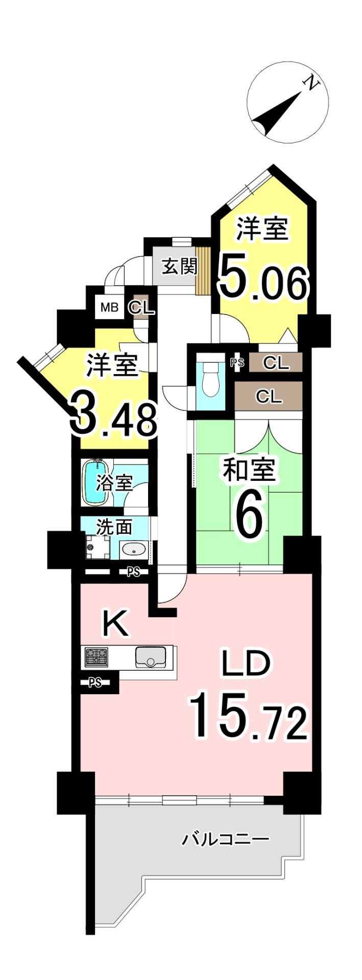 | 専有面積 | 壁芯 76.46㎡ | 所在階 | 14階建/6階部分 |