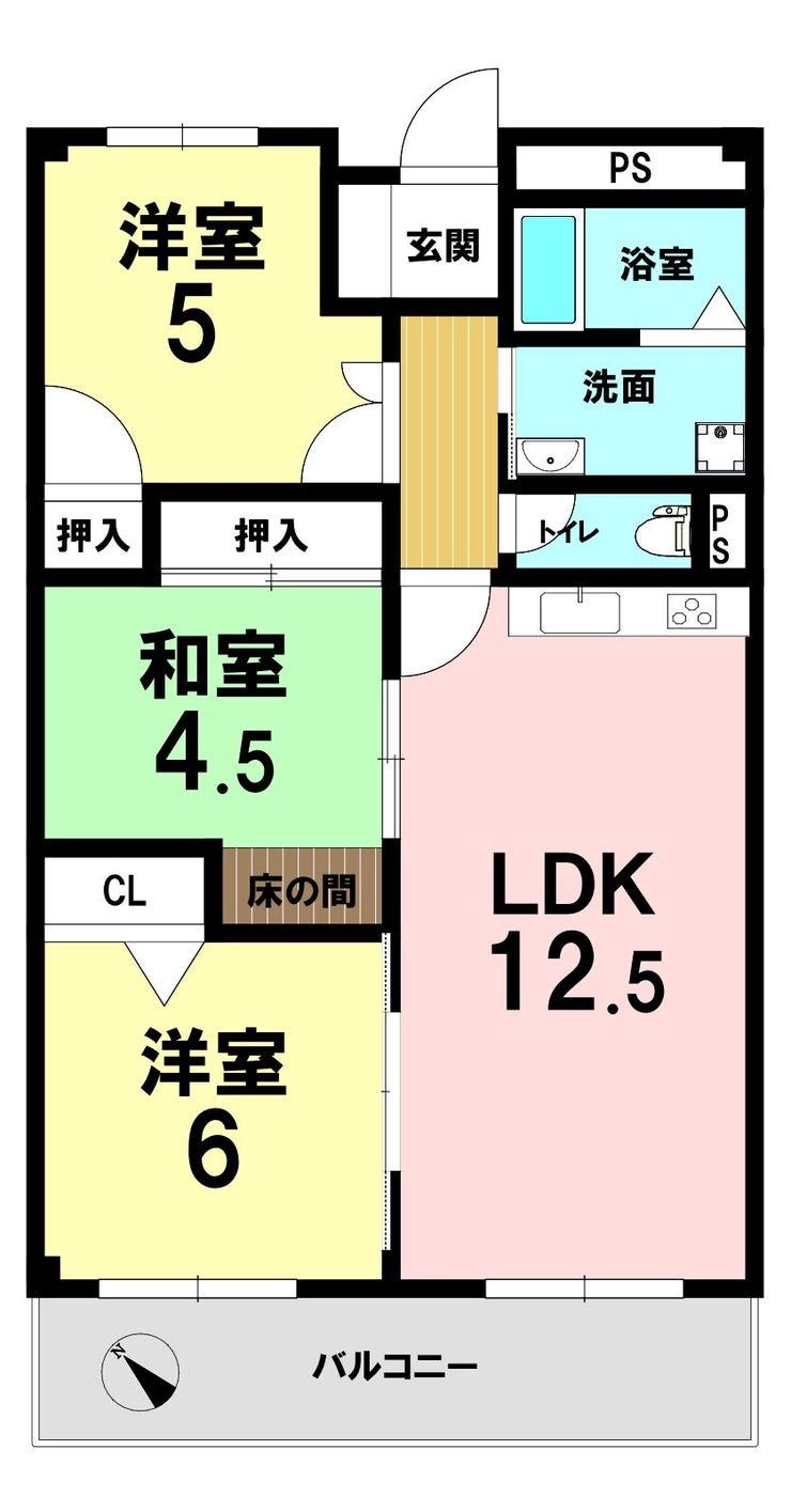 | 専有面積 | 壁芯 64.96㎡ | 所在階 | 11階建/6階部分 |
