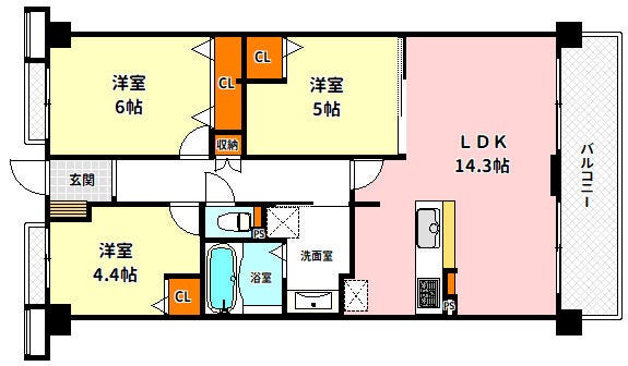 ■専有面積65.88m2 全室洋室の3LDK!