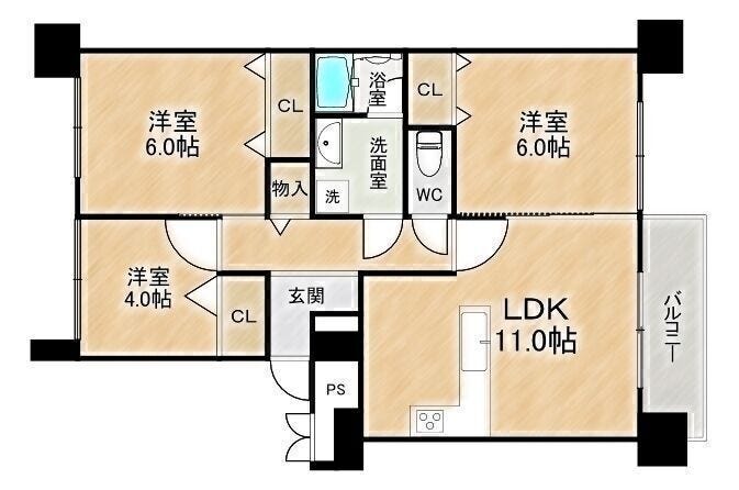 | 専有面積 | 壁芯 62.20㎡ | 所在階 | 11階建/6階部分 |
