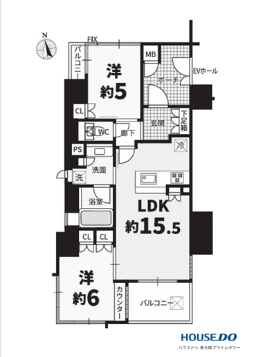 - 2面バルコニー