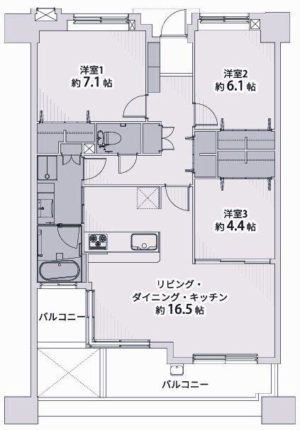 | 主要採光 | 南西向 | バルコニー | 南西向13.14㎡ |