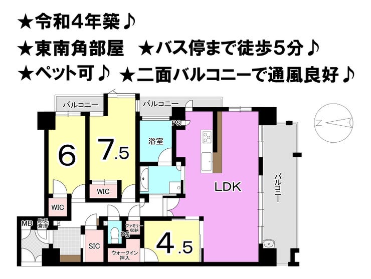 ■令和4年築 ■室内美邸 ■ペット飼育可 ■人気の道後小・中校区 ■東南角部屋