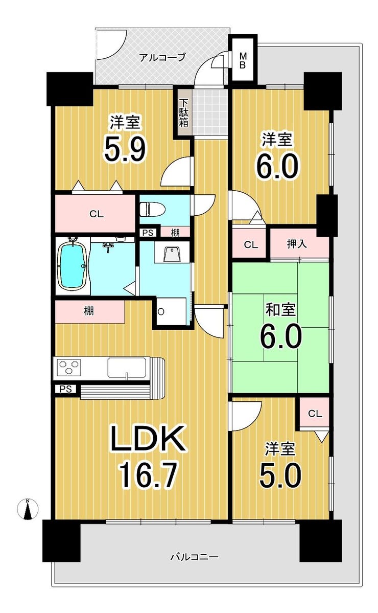 | 主要採光 | 南向 | バルコニー | 南向28.41㎡ |