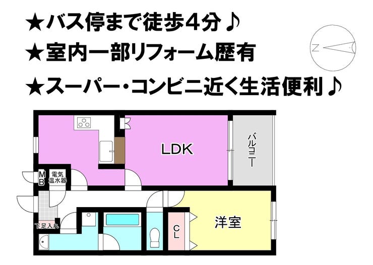 ■バス停まで徒歩4分 ■室内一部リフォーム歴有 ■スーパー・コンビニ近く生活便利