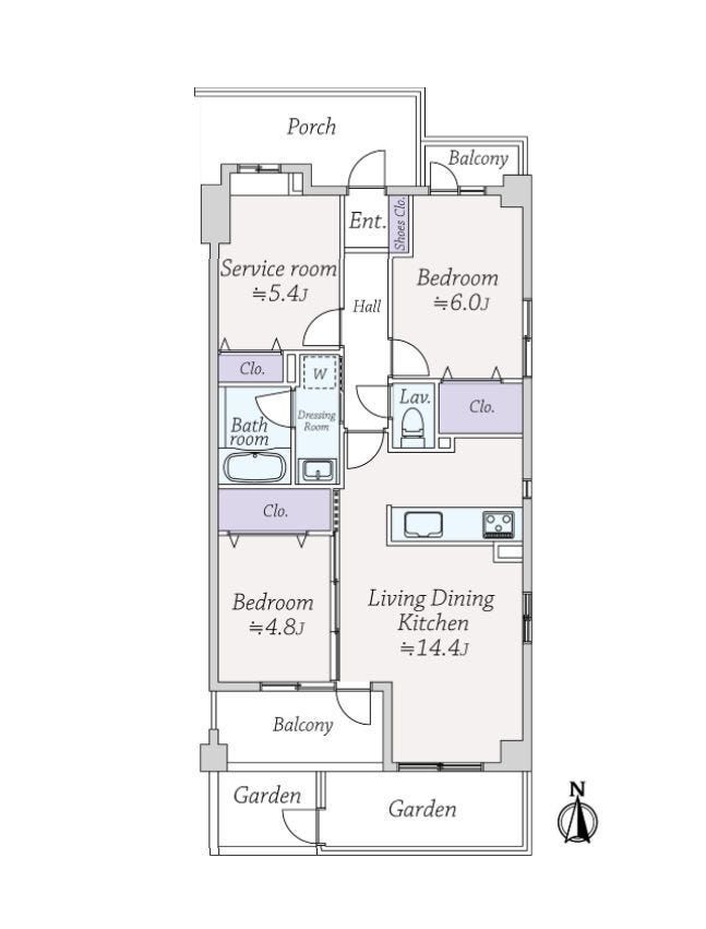 | 主要採光 | 南向 | バルコニー | 南向7.72㎡ |