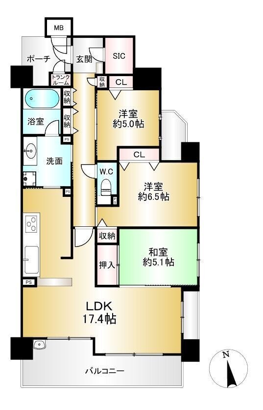 | 主要採光 | 南向 | バルコニー | 南向14.84㎡ |
