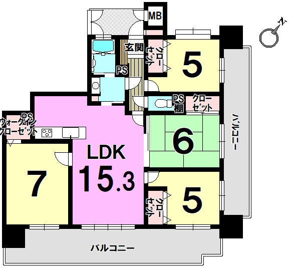 - 2面バルコニー
