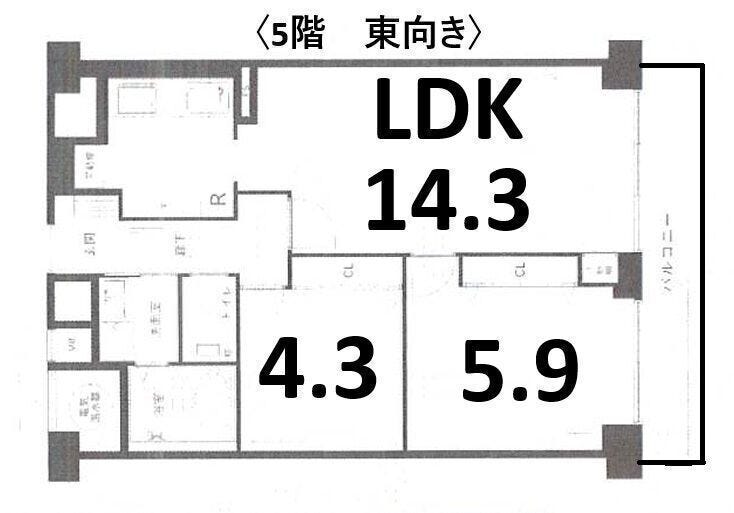 | 専有面積 | 59.22㎡ | 所在階 | 7階建/5階部分 |