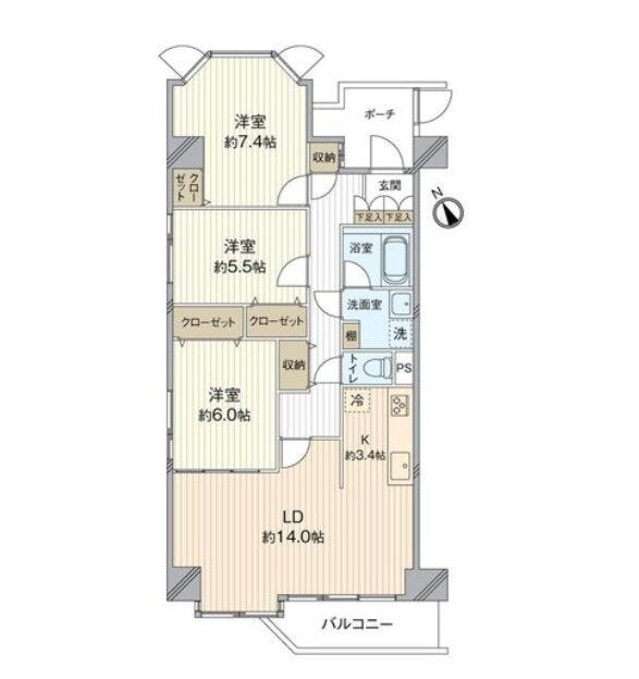 | 主要採光 | 南向 | バルコニー | 5.59㎡ |