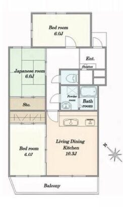 | 専有面積 | 69.44㎡ | 所在階 | 4階建/3階部分 |