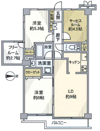 | 専有面積 | 65.43㎡ | 所在階 | 7階建/4階部分 |