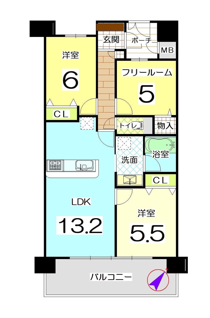 | 専有面積 | 壁芯 66.52㎡ | 所在階 | 19階建/2階部分 |