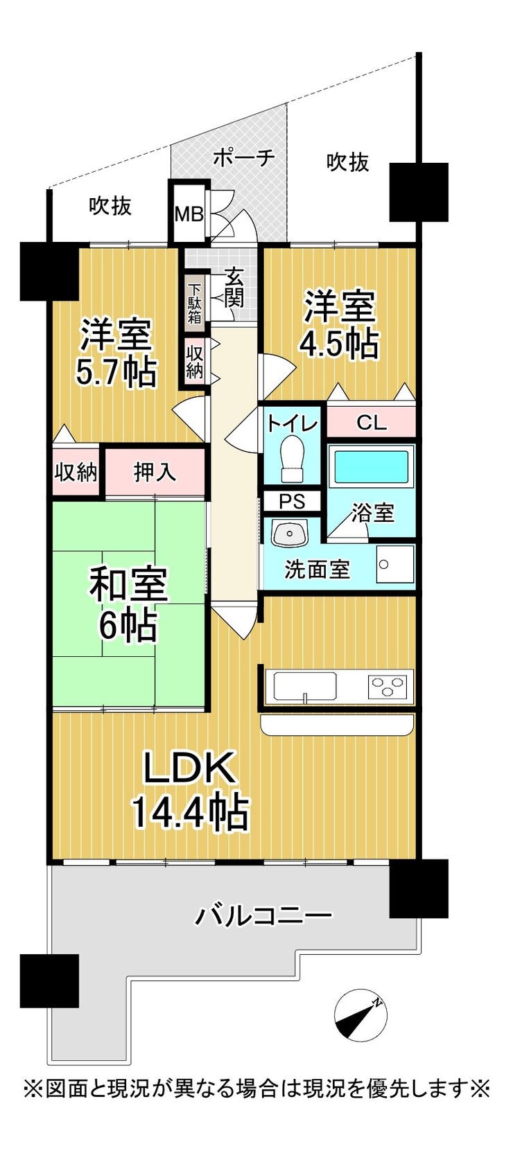 | 専有面積 | 壁芯 66.50㎡ | 所在階 | 15階建/5階部分 |