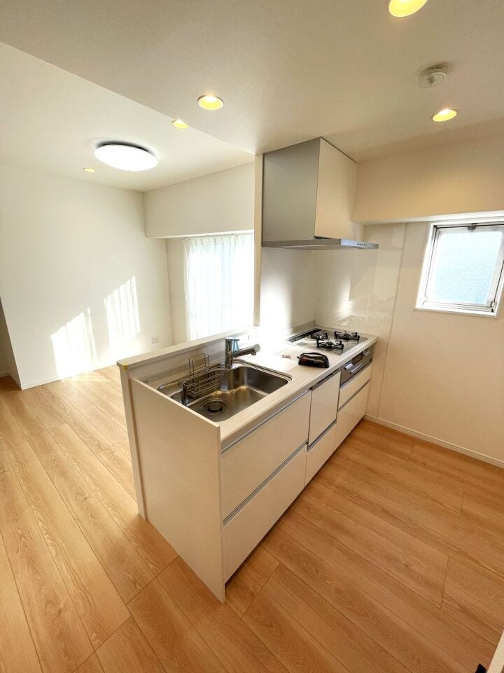 システムキッチン(食洗器付)・ユニットバス・給湯器・マルチリモコン・浴室換気乾燥暖房機・洗面化粧台・温水洗浄便座・洗濯パン・給水・給湯管更新・ダウンライト・照明器具(LED)・分電盤・コンセント・フローリング・フロアタイル・CF・クロス張替・可動棚・クローゼット・建具・エアコン2台・レースカーテン・住宅用火災警報器等