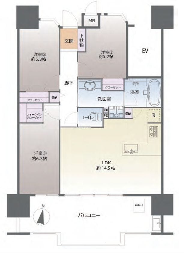 | 専有面積 | 69.70㎡ | 所在階 | 15階建/4階部分 |