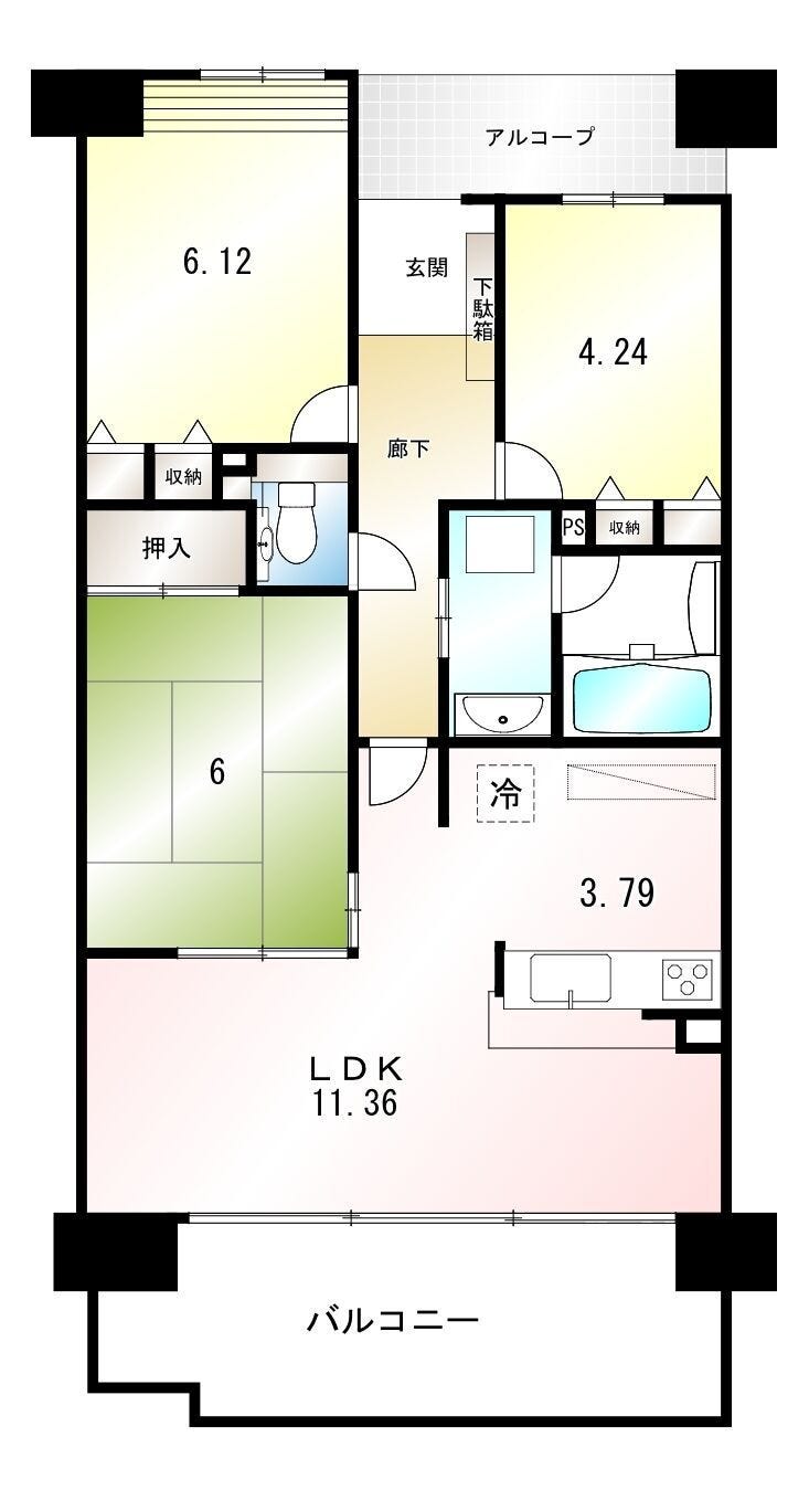 | 専有面積 | 壁芯 70.11㎡ | 所在階 | 8階建/4階部分 |