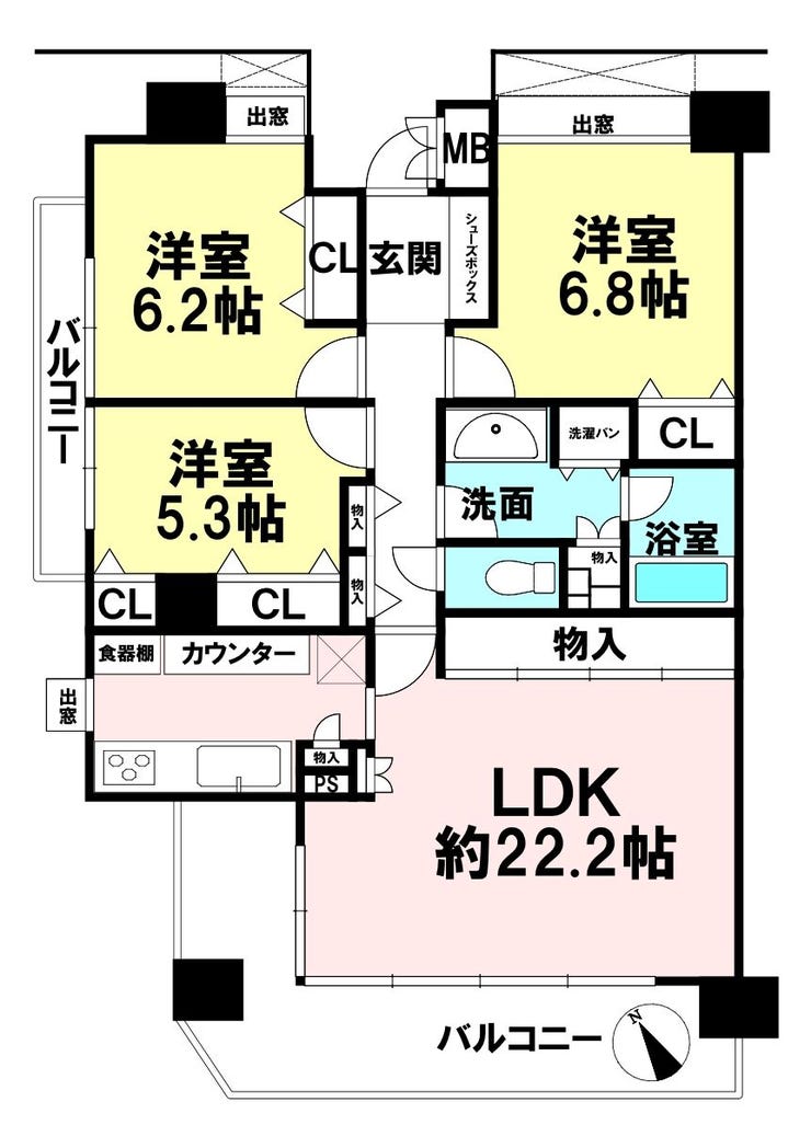 | 主要採光 | 南西向 | バルコニー | 南西向20.73㎡ |