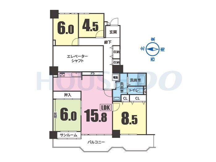 | 主要採光 | バルコニー | 西向15.30㎡ | |
