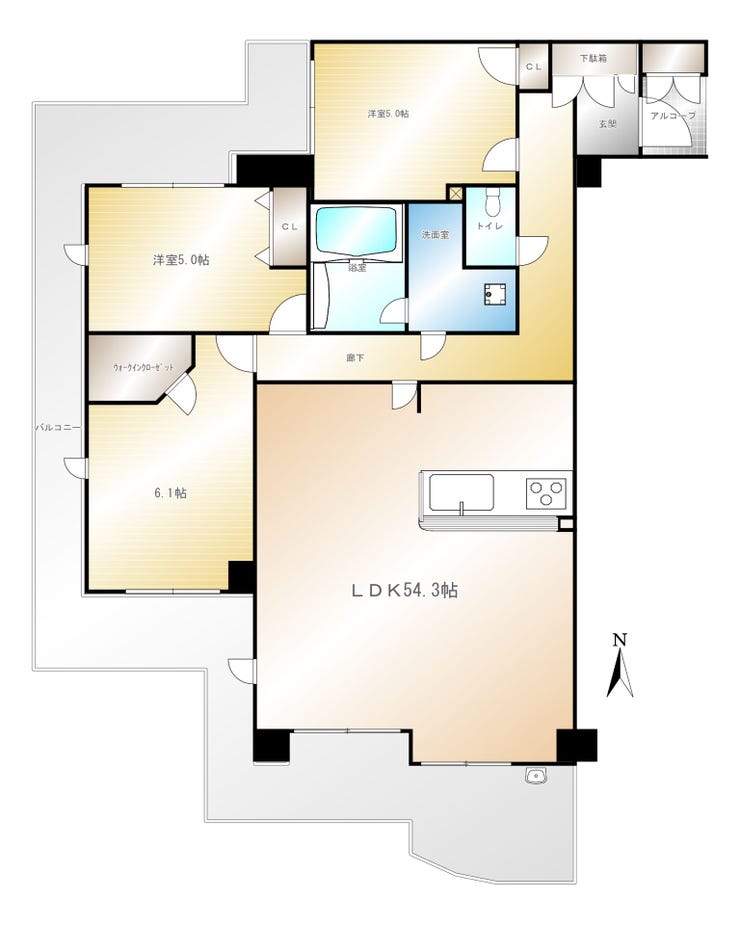 - 3面バルコニー