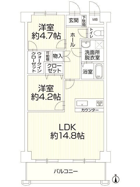 | 主要採光 | 南向 | バルコニー | 北向7.98㎡ |