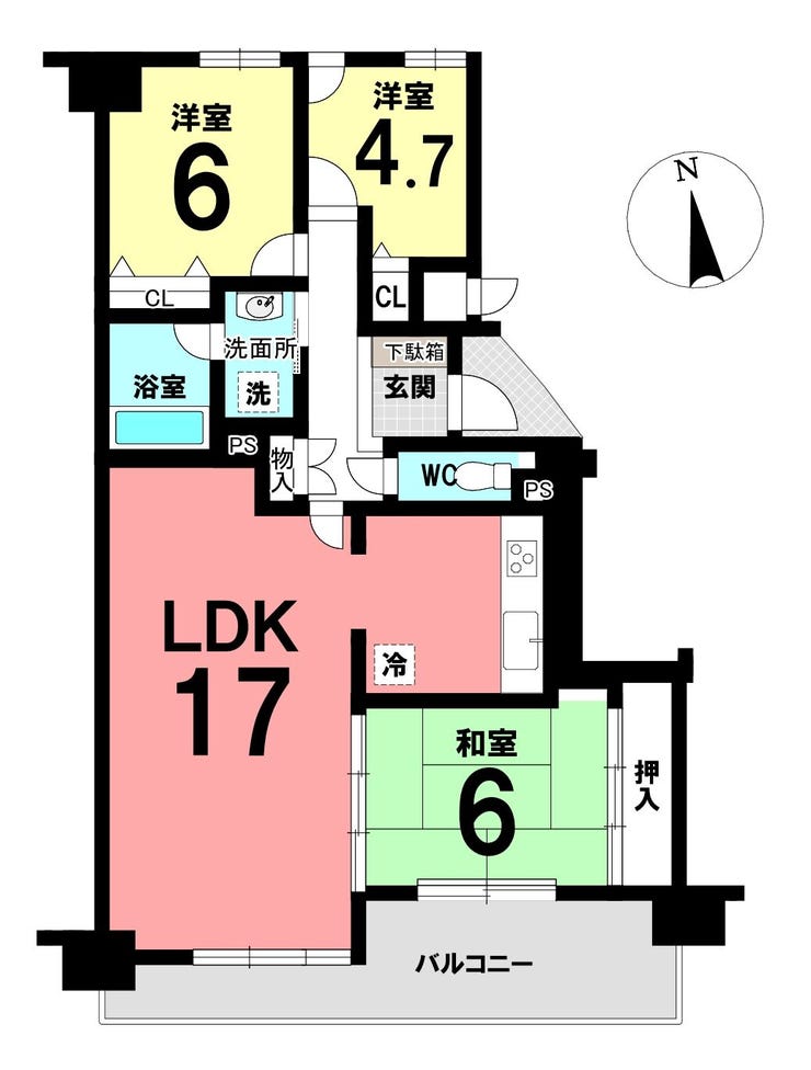 | 専有面積 | 壁芯 73.94㎡ | 所在階 | 6階建/4階部分 |
