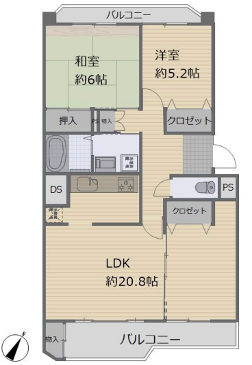~開放感のある南向き2LDK~