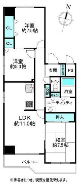 | 備考 | ■令和8年1月リフォーム完了予定(※水廻り一式交換、フローリング張替、壁紙張替、クッションフロア張替、建具塗装等) ■ペット飼育可(※小型犬・猫/要相談) ■角部屋 ■排水管清掃料月額300円 |