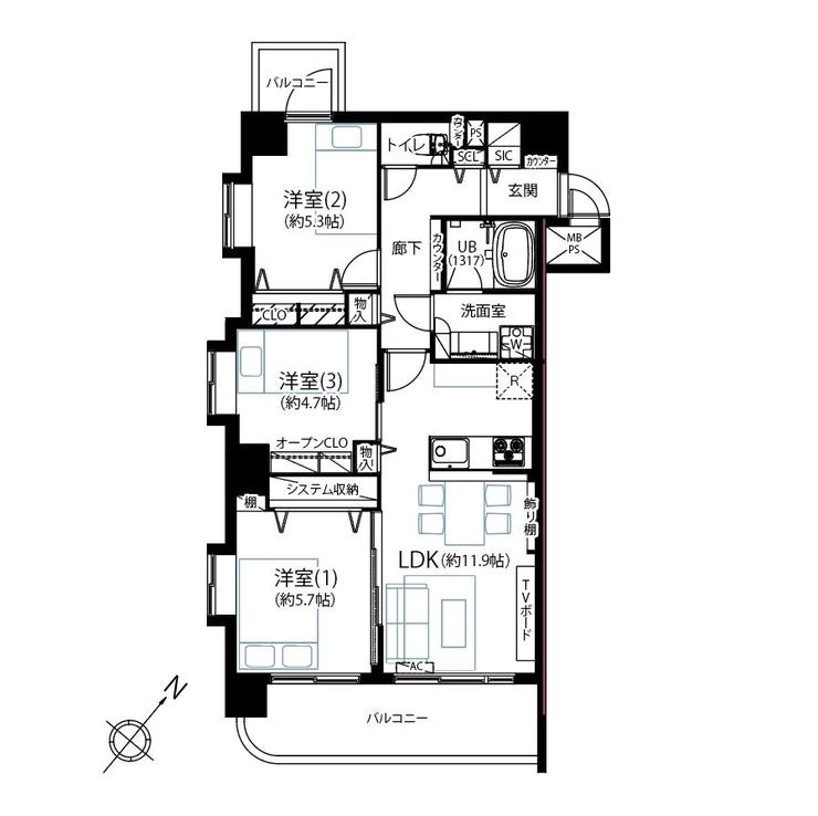 - 3方角住戸