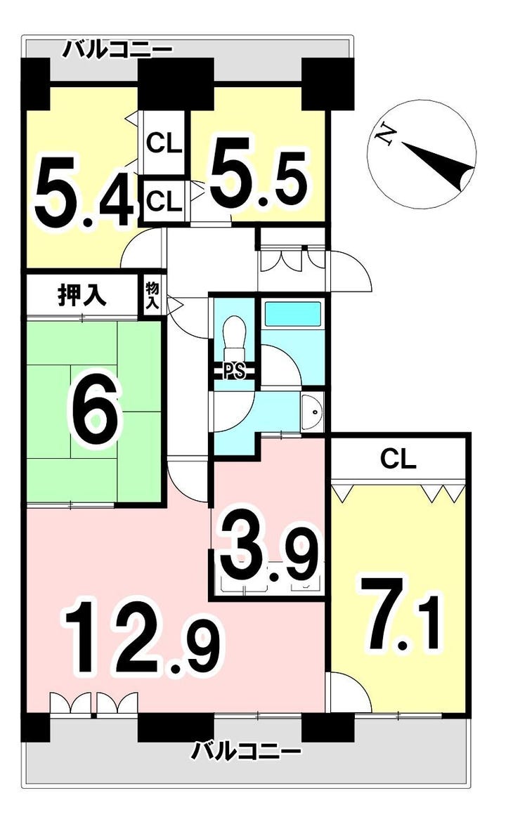 - 2面バルコニー