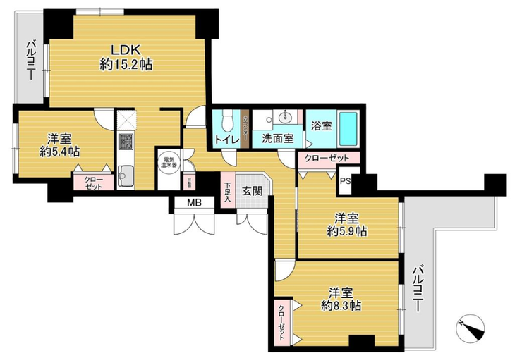 - 2面バルコニー