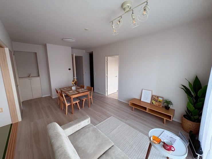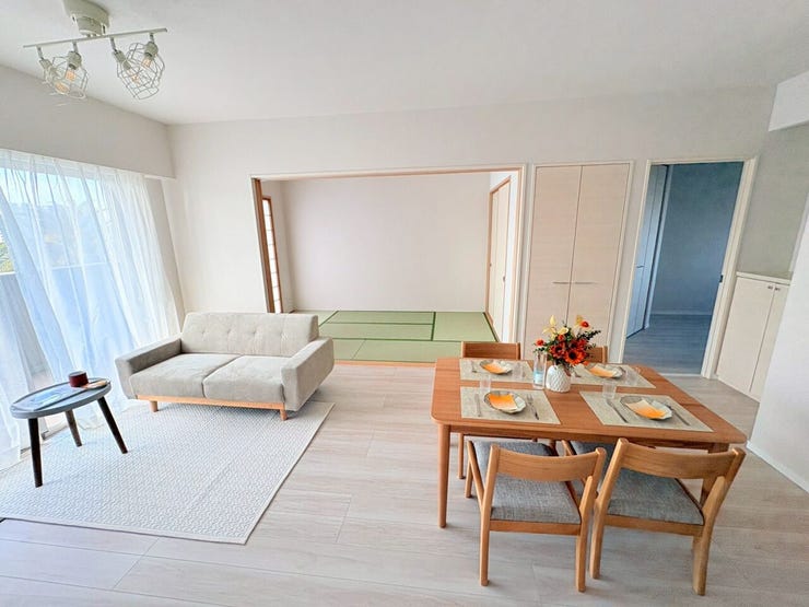 キッチン・浴室・トイレ・壁・床をリフォーム済み。建具は既存利用のため、コストと品質のバランスが取れた室内状態です。