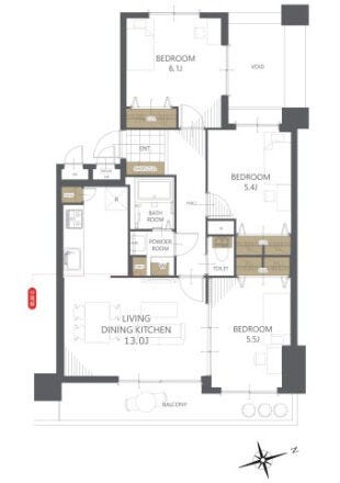 | 専有面積 | 壁芯 67.73㎡ | 所在階 | 11階建/5階部分 |