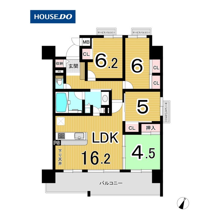 | 主要採光 | バルコニー | 南東向16.74㎡ | |