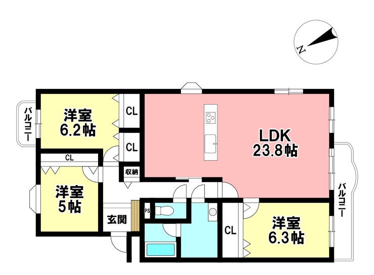 - 2面バルコニー
