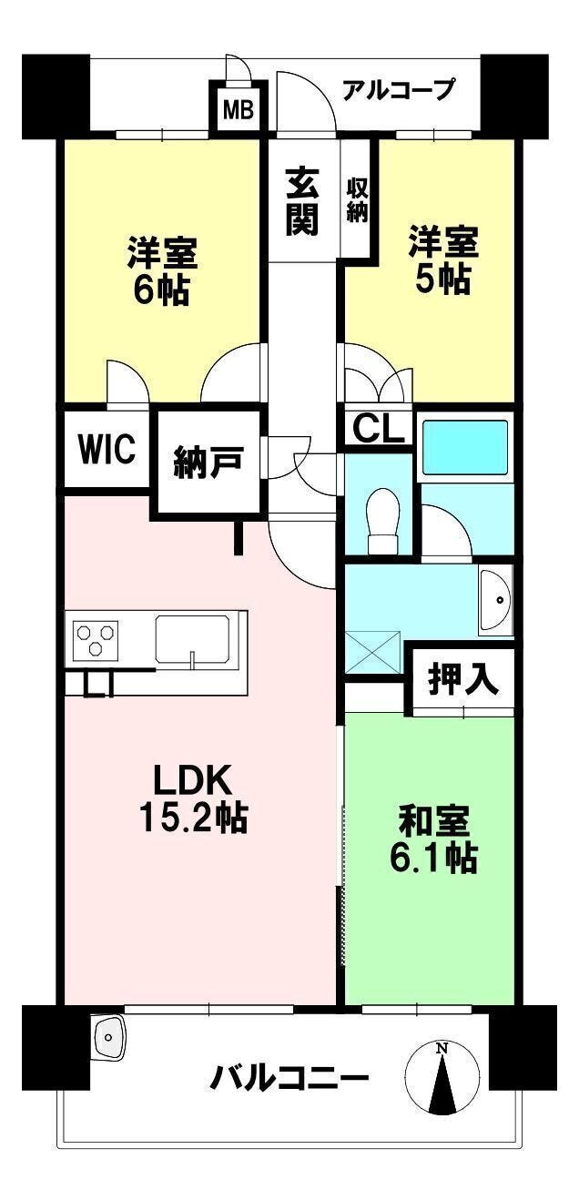 | 主要採光 | 南向 | バルコニー | 南向12.80㎡ |