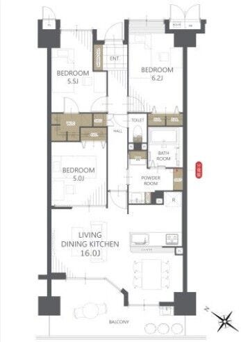 | 主要採光 | バルコニー | 南西向13.82㎡ | |