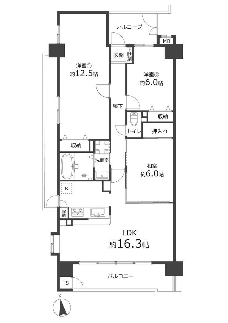 | 主要採光 | 南向 | バルコニー | 南向15.65㎡ |
