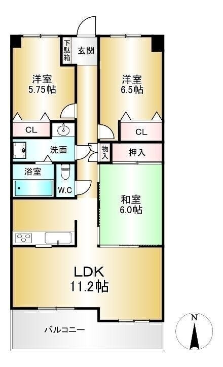 | 専有面積 | 壁芯 69.30㎡ | 所在階 | 11階建/2階部分 |