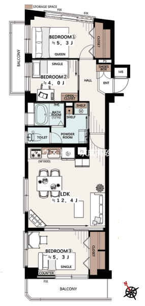 - 3方角住戸