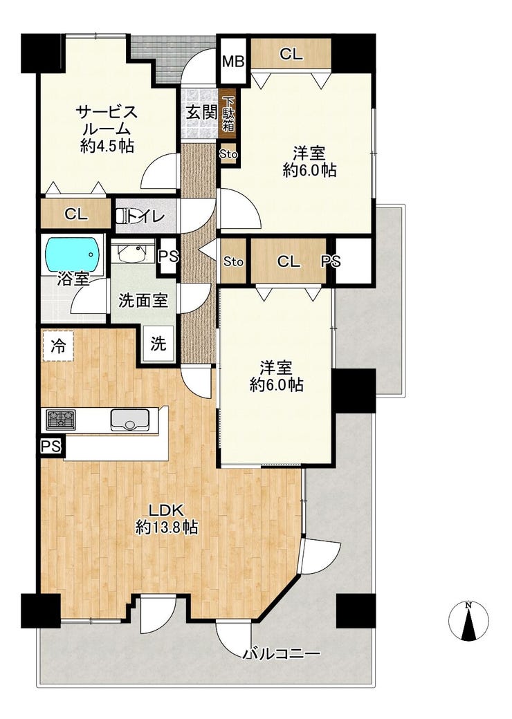 | 専有面積 | 壁芯 67.60㎡ | 所在階 | 8階建/4階部分 |